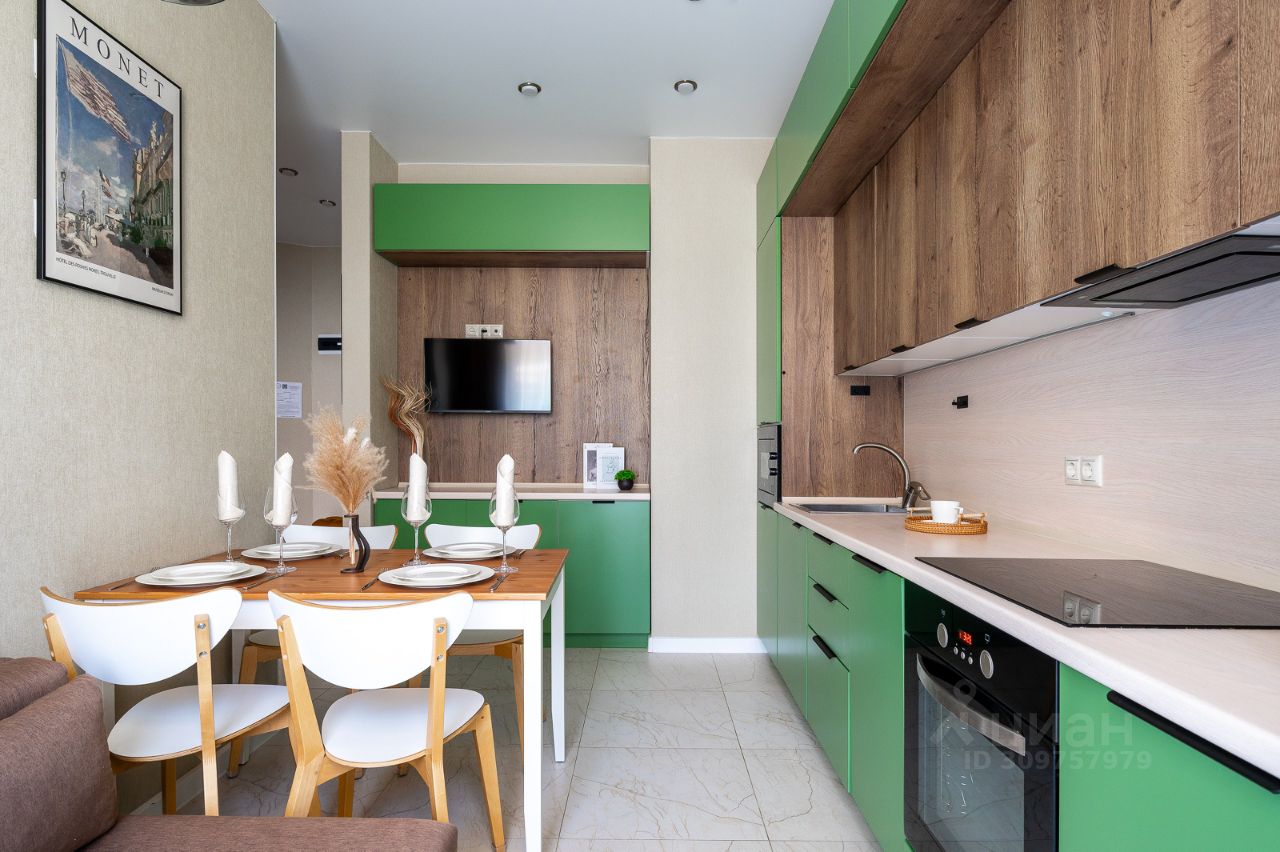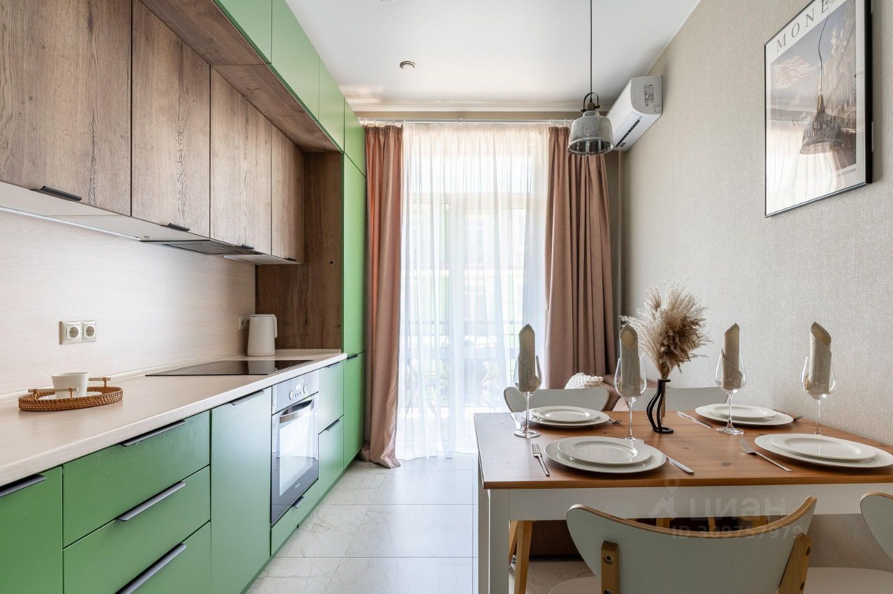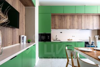 — Вся необходимая посуда, чайник, варочная панель, вытяжка, посудомоечная машина, духовой шкаф, микроволновая печь, холодильник.