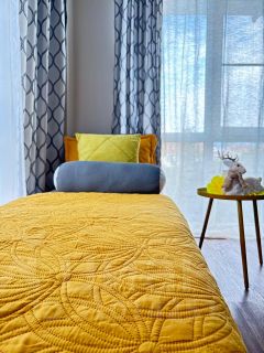 Максимальное количество гостей: 5: двуспальная кровать в спальне двуспальный диван и кресло-кровать в гостиной, возможен шестой ребёнок, т к шестое место дополнительное - раскладушка или детская кроватка.