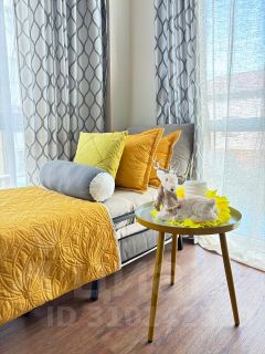 Сдаём до мая, рассмотрим от 1 месяца. Квартира с раздельными комнатами: спальня и гостиная, объединенная с кухней.