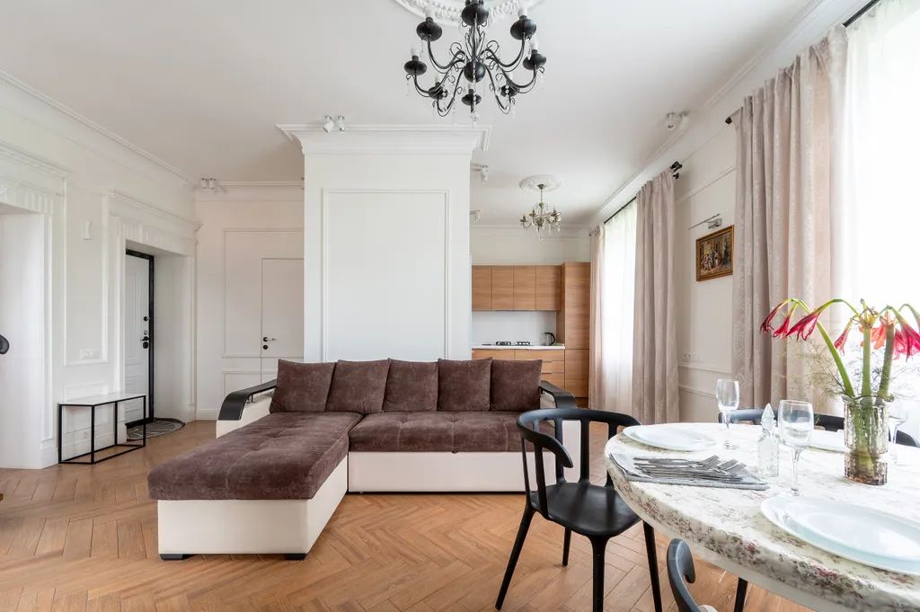 Квартира с неповторимой атмосферой курортного Сочи - высокие потолки, лепнина, паркет, прекрасный вид на город из окон и конечно же - пальмы и кипарисы во дворе.