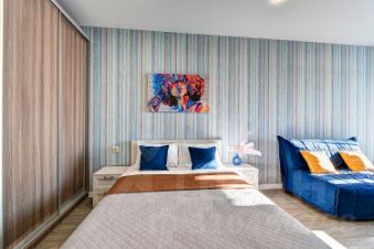 В спальнях расположена удобная и комфортная кровать с матрасами средней жёсткости, системы хранения вещей.