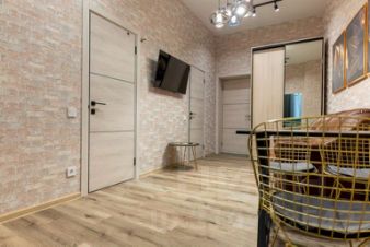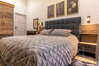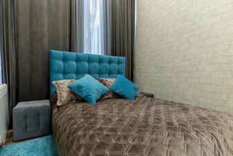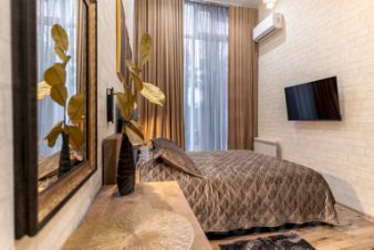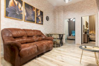 Трёхкомнатная квартира площадью 48 кв. м. расположена на 1 этаже. Подойдёт для семейного отдыха или компании друзей до 5 человек. В квартире есть: спальня с кроватью, диван в гостиной, кухня-столовая с оборудованием и обеденной зоной. В ванной комнате имеется душевая кабина, полотенцесушитель и другие удобства. Также предусмотрены удобства, такие как: высокоскоростной Wi-Fi, кондиционер, телевизор, стиральная машина, холодильник, микроволновая печь и чайник.