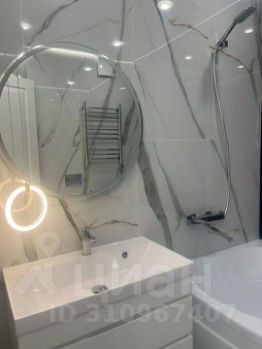 В санузле полноценная угловая большая ванна, зеркало с подсветкой, стиральная машина.
