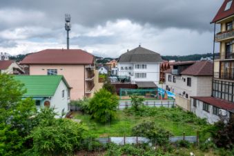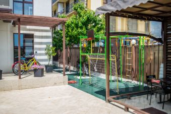 На огороженной прилегающей к зданию территории оборудованы детская площадка и беседка с обеденными столами для ваших добрых вечерних посиделок на открытом воздухе. Гости, приезжающие на автомобилях, могут оставить их на парковке перед домом.