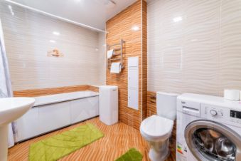 - просторный санузел с ванной и стиральной машиной.