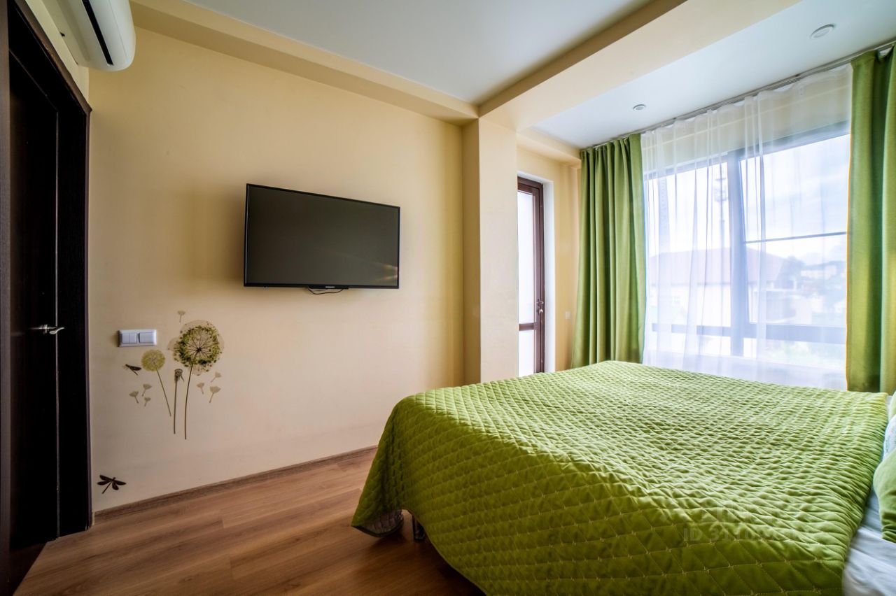 Апартаменты с 2-мя спальнями, просторной кухней и большой ванной, всего в 7 минутах ходьбы до парка аттракционов Сочи Парк и в 15 минутах до набережной