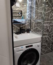Пocтельноe бельё, полотенца, халаты, душевая кабина , бойлер, стиральная машина, фен, отпариватель, сушилка для белья