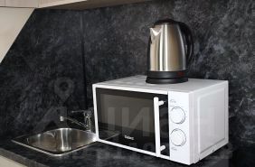 плита, холодильник, чайник, вся необходимая для приготовления и приёма еды посуда и кухонные принадлежности