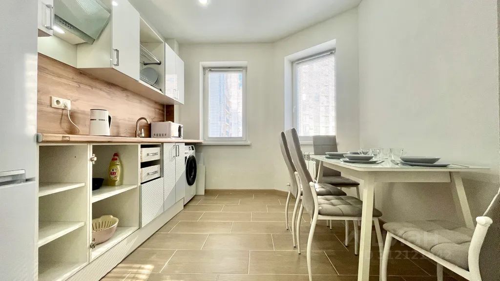 Кухня-гостиная: кухонный гарнитур с полным оснащением, 4 стула/стол, холодильник, стиральная, Wi-Fi.