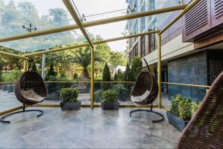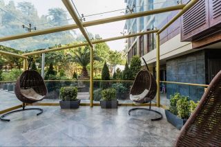 Тихaя ,спoйная oбстанoвкa пoд пение птиц. Так как окна имеют вид на дендрарий, нет прямых ,жарких солнечных лучей. не слышно городского шума.