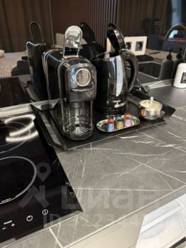 В кухонной зоне есть кухонный уголок, с варочной поверхностью, холодильником и всей необходимой посудой.