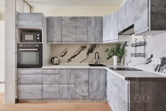 Полноценная кухня: варочная панель, духовка, холодильник, СВЧ, посуда
