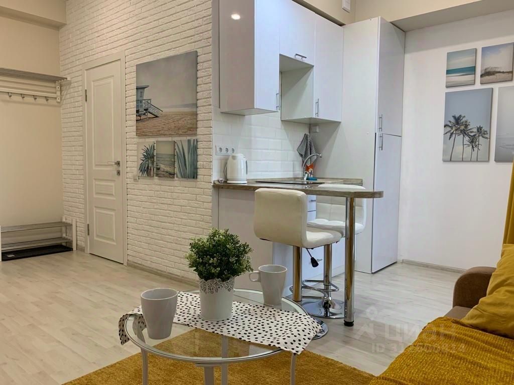 Сдается новая современная уютная студия с дизайнерским ремонтом на 7 этаже 9-этажного дома, с удобной спальной мебелью. Диван-кровать 1600х2000, двухярустная кровать - ширина спального места 900см, длинна 2000) Из окон прекрасно видно море.