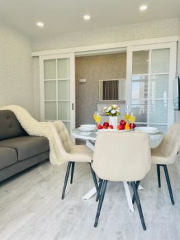 Дополнительно: утюг, гладильная доска, сушилка для вещей, кондиционер в каждой комнате (кухня, спальня и гостиная), тёплые полы, ЖК ТВ, wi-fi.