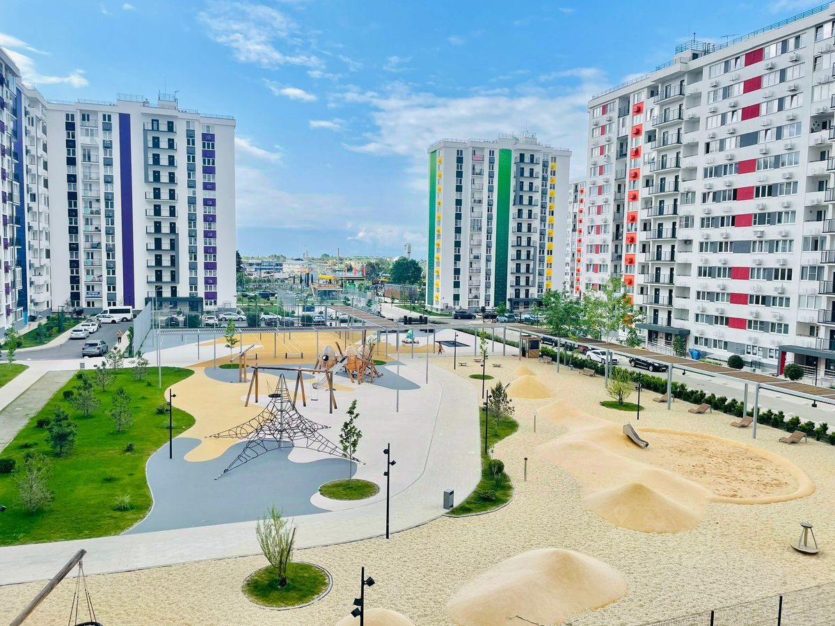 На территории ЖК есть зоны отдыха, насыпной песок, уличные стулья- шезлонги и беседки.