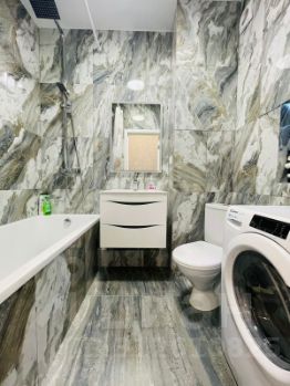 Ванная комната располагает ванной, что является отличным преимуществом и удобством. В ванной есть стиральная машина с функцией сушки белья, есть фен.