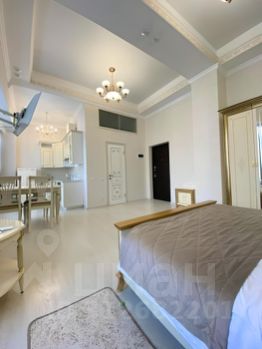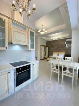 В студии полностью оснащена кухня: холодильник, морозильная камера, полноценная индукционная плита на 4 конфорки, большой духовой шкаф, микроволновая печь, необходимая посуда для приготовления пищи и приборы.