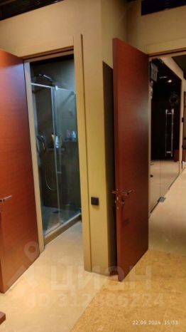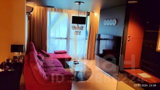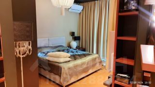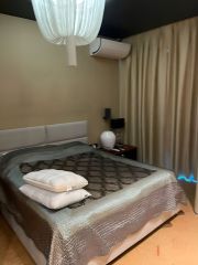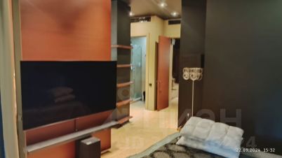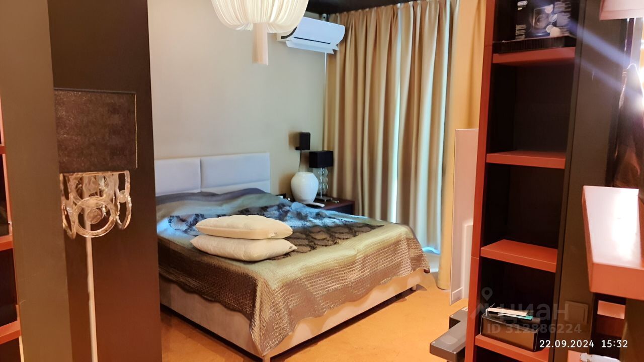 Кроме этого в спальне есть большие вместительные шкафы, отдельный санузел, огромный телевизор, акустическая система, панорамные окна со шторами блэк-аут.