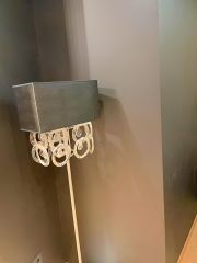 Спальня с дизайнерским ремонтом оснащена огромной 2-х спальной кроватью, прикроватными тумбочками, лампами и торшером, которые создают уютное освещение.