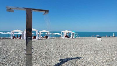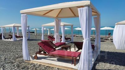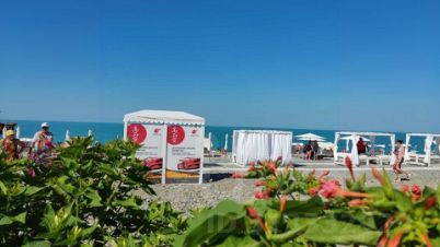 Платный пляж повышенной комфортности ОК Дагомыс в 10 минутах (проход на него через местную достопримечательность - подвесной пешеходный мост, который был построен более 100 лет назад, с которого можно полюбоваться прекрасным видом на горы или покормить рыбок, и это совсем около дома)