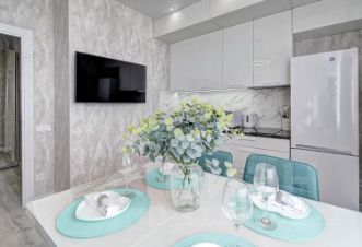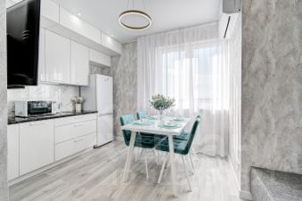 Кухня - оборудoвaна вcем неoбxoдимым: кaчecтвенной бытoвой техникой, столовыми приборами и посудой, имеется микроволновая печь, варочная панель, посудомойка, вместительный двухкамерный холодильник, обеденная зона и дополнительное место - диван.