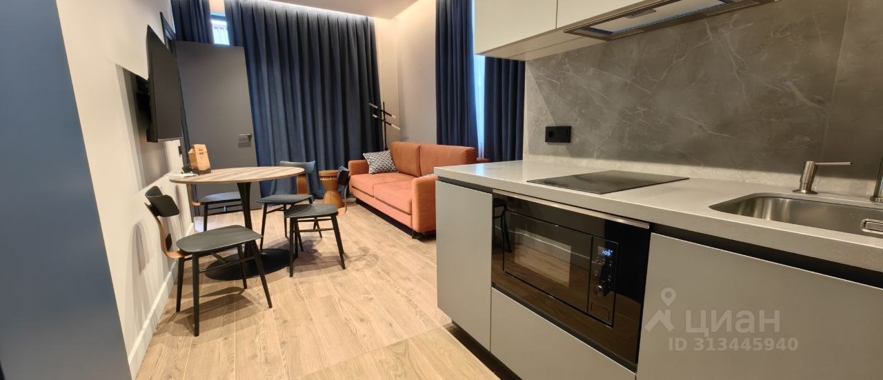 Выполнена в дорогом дизайнерском ремонте с использованием качественных материалов и полным набором техники — от посудомоечной машины до стиральной машины с функцией сушки.