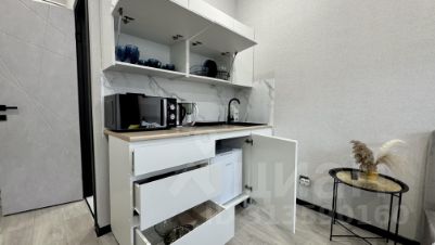 мини холодильник, микроволновая печь, электрочайник, посуда.