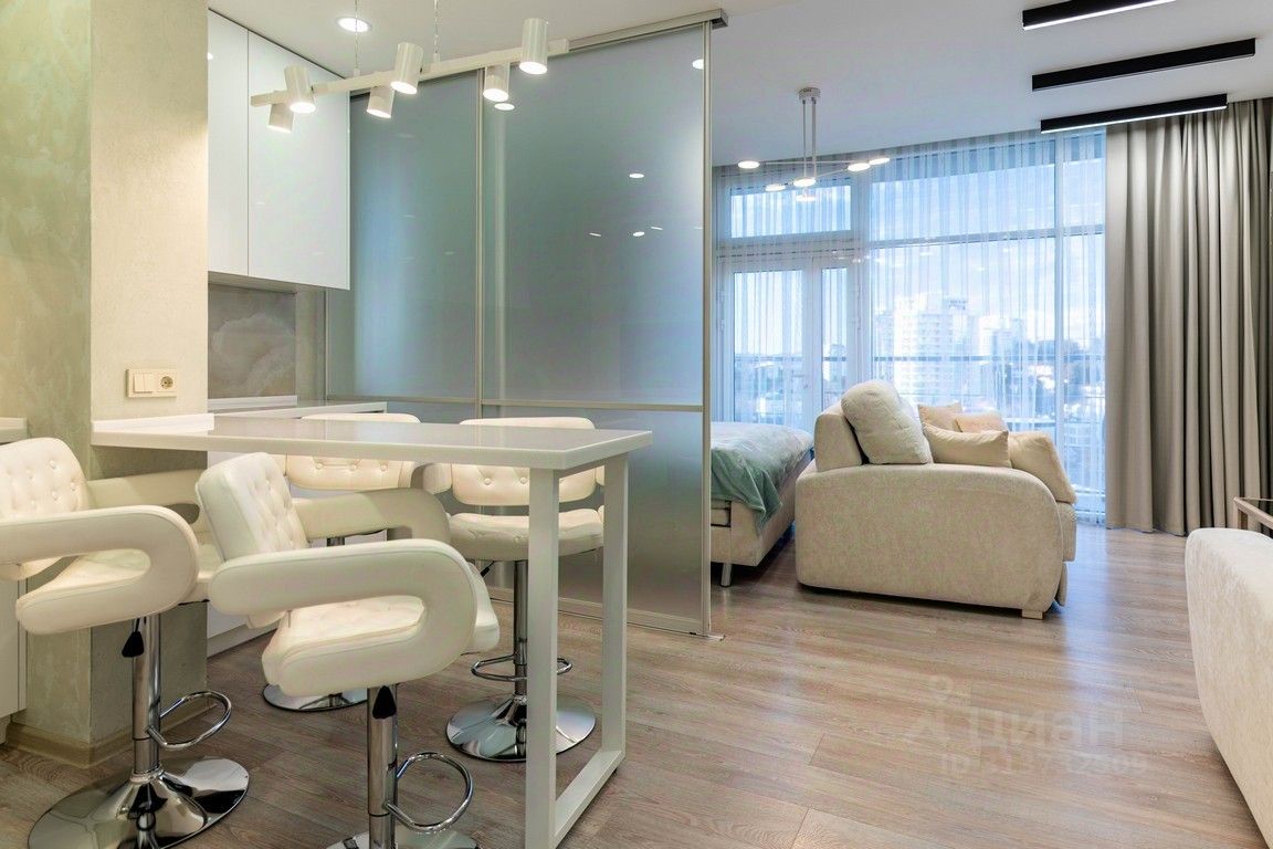 Технологичный апартамент-студия площадью 52 м² расположен на 13 этаже