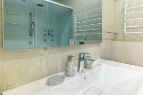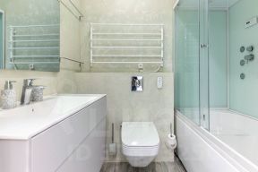 Ванная комната оснащена всем необходимым, включая душевую кабину-ванную, полотенцесушитель, раковину и зеркало