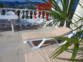 Рядом с бассейном или на собственной террасе Вы сможете позагорать на шезлонгах, любуясь видом открытого моря.