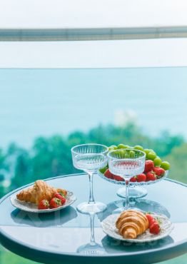 Дом находится на Первой береговой линии. На благоустроенной территории находятся детская и спортивная площадки, открытый бассейн, функционирующий в теплое время года, изысканный ресторан, продуктовый магазин, салон красоты и SPA-центр.