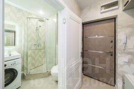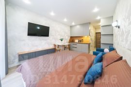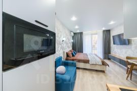 Студия с новым ремонтом, с собственным выходом к речке, с парковкой на территории комплекса и большой детской площадкой.