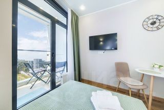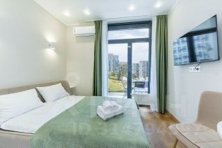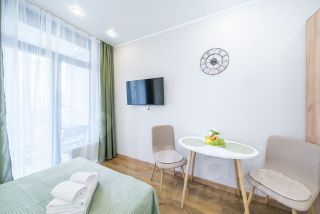 Просторная и светлая студия с уютным балконом идеально для утреннего кофе или вечернего отдыха.