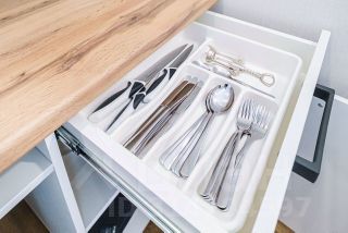 Полностью оборудованная кухня: вся необходимая посуда, утюг, гладильная доска и фен.