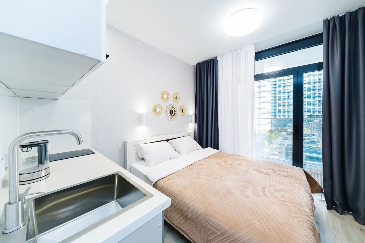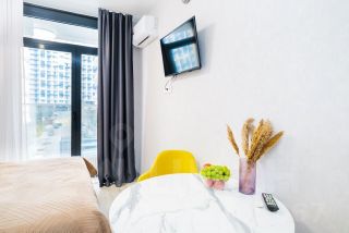 Светлая студия с уютным балконом, идеальным для утреннего кофе или вечернего отдыха.