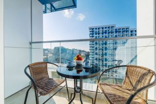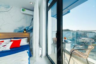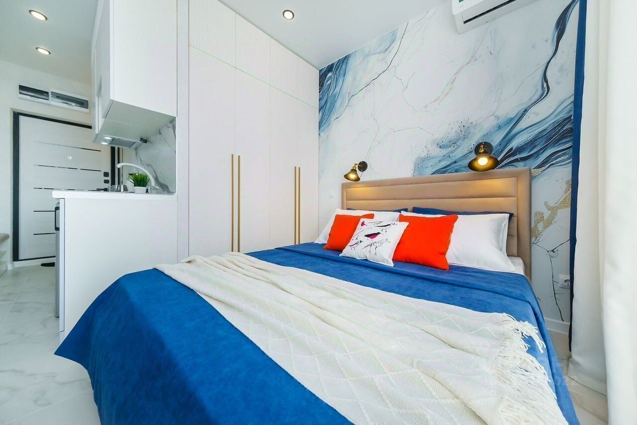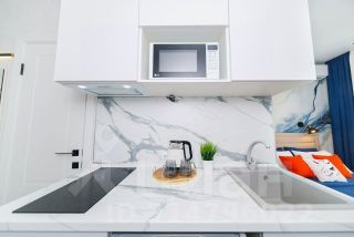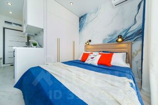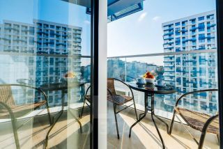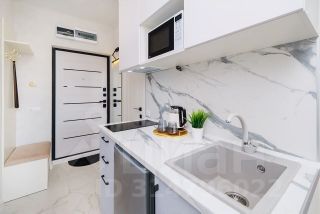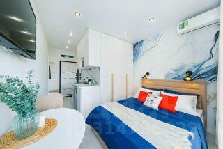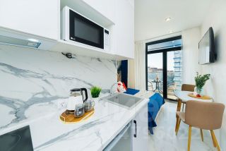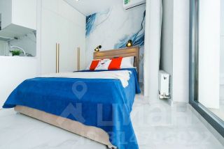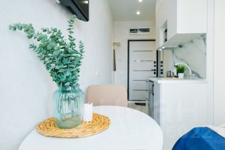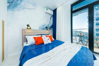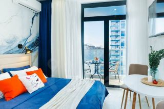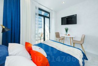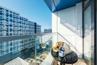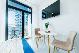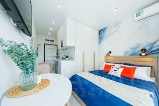 Просторная светлая студия с уютным балконом, идеальным для утреннего кофе или вечернего отдыха.