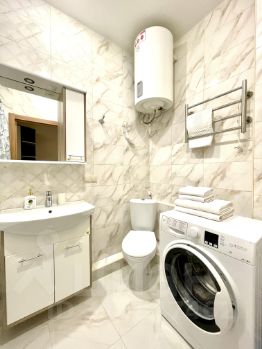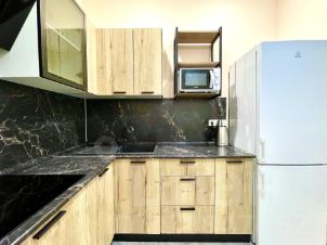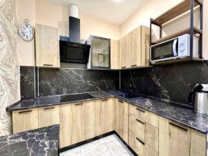 • Оборудованная кухня: плита, холодильник, микроволновка, электрический чайник, так же в квартире есть стиральная машина, утюг и фен.