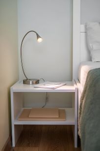 Из дополнительного оснащения: пылесос, гладильная доска, утюг, сушилка для белья, напольная вешалка-перекладина, детская кроватка, горшок и стульчик для кормления.
