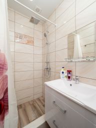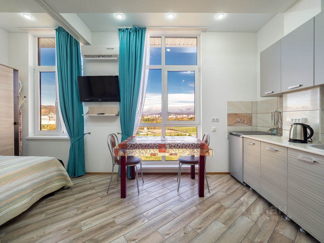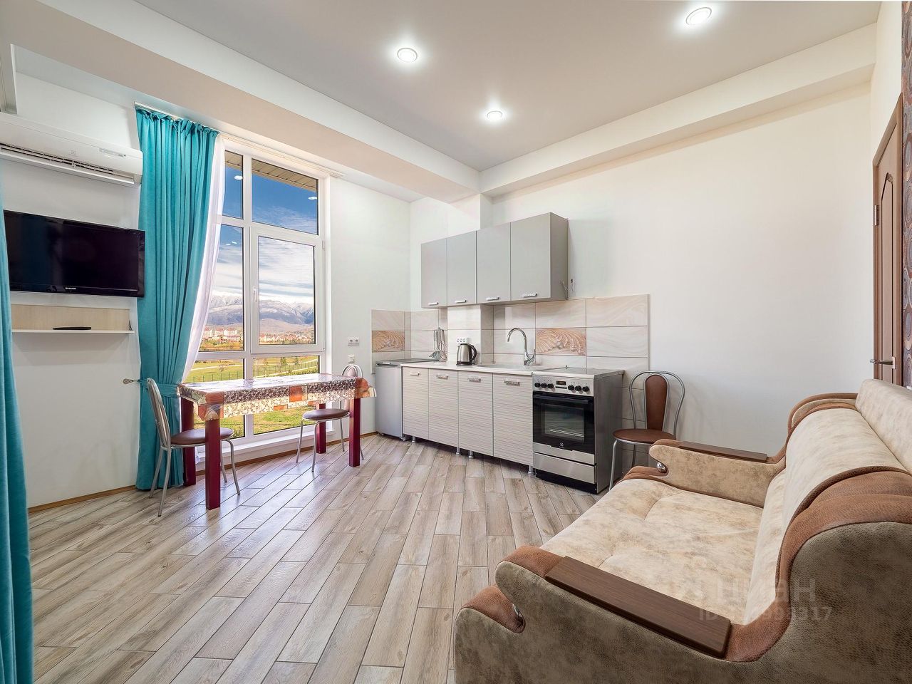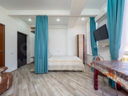 Квартира- студия находится в 7 минутах от моря. Из окон открывается шикарный вид на Орнитологический парк и заснеженные Кавказские горы. Всё необходимое для проживания 4-х человек имеется. В шаговой доступности магазины, столовые, рестораны, парк аттракционов. Недалеко Олимпийский парк, Сочи парк, граница с Абхазией. Также можно уехать на городском транспорте в Сочи и Красную Поляну.Остановка рядом. Есть трансфер с вокзала и аэропорта.