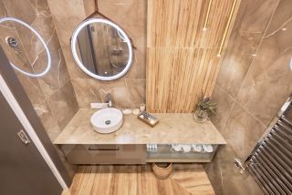 В санузле представлена российская косметика натура сиберика, все моющие средства и порошки в апартаментах- экологические(эко).