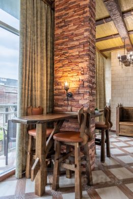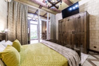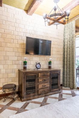 Апартаменты стилизованы под средневековый замок, предназначены для проживания не более 5-6 гостей и укомплектованы абсолютно всем необходимым для комфортного проживания: белоснежное постельное белье, по два полотенца для каждого гостя, тапочки, предметы личной гигиены, капсулы для стирки и посудомоечной машины, средство для мытья посуды и т.д. Во всех комнатах установлены кондиционеры и спутниковое ТВ, отличный скоростной Wi-Fi для людей работающих удаленно.