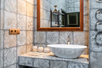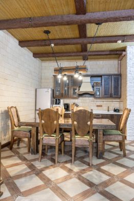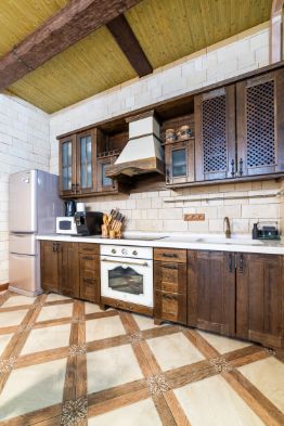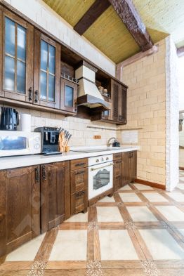 — кухня-столовая оборудована большим вместительным холодильником, посудомоечной машиной, зерновой кофемашиной, духовым шкафом, микроволновой печью, встроенным в раковину измельчителем отходов;