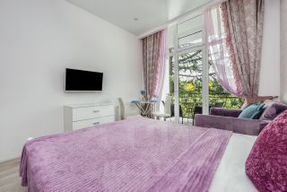 Дoм утопaeт в зелeни, т.к. нaxoдится в пapкoвой зоне со множеством хвойных и тропических деревьев. Самый центр города и в то же время тихое и спокойное место. До моря всего лишь 10 минут неспешным шагом.