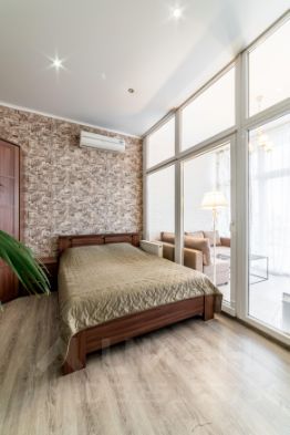 — в гостиной двуспальная кровать 180х200 см., раздвижной диван шириной 150х200 см., вместительный шкаф для одежды, комод с зеркалом;