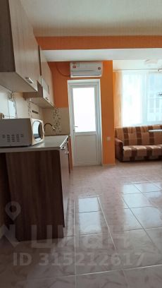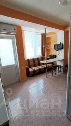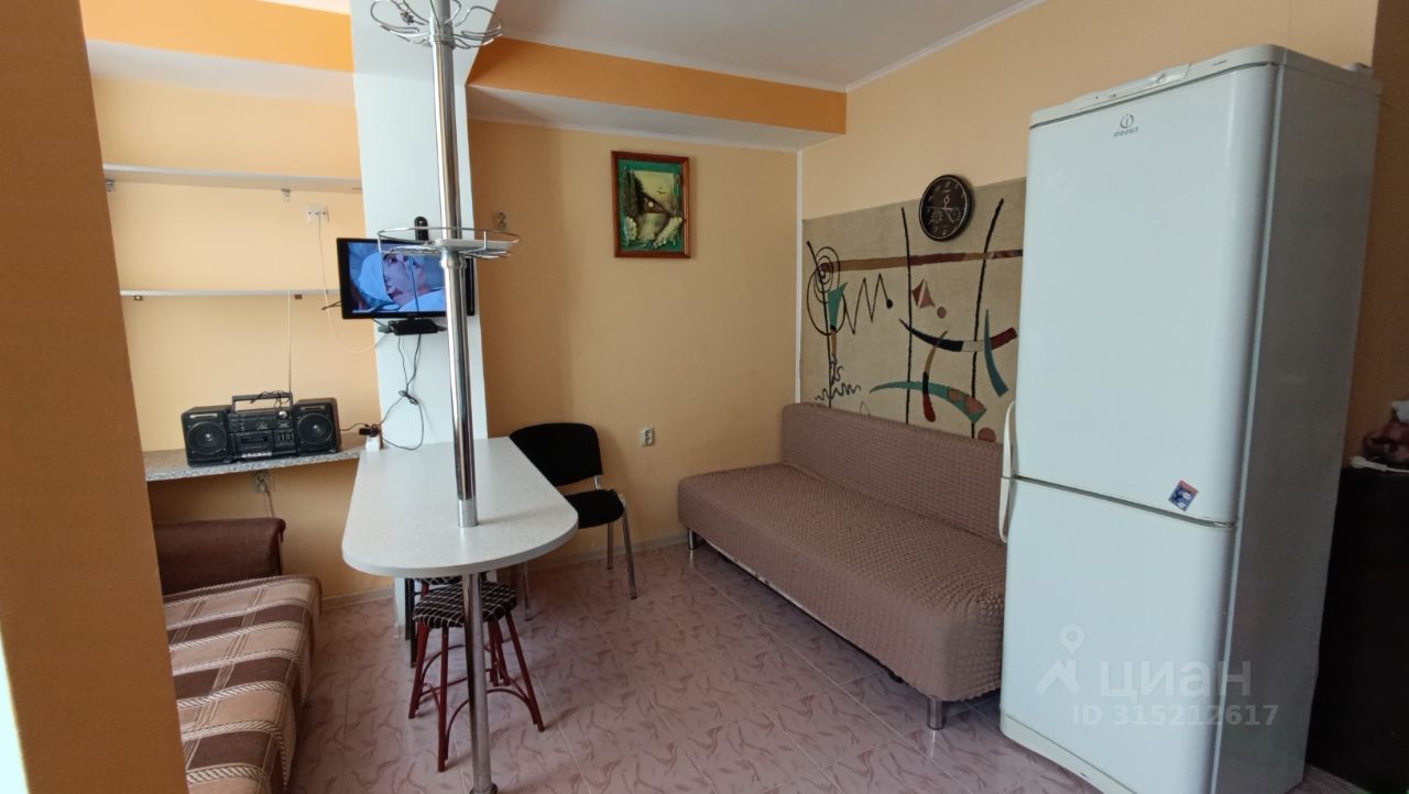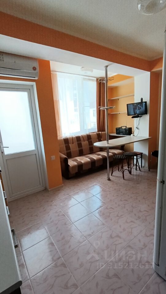 Студия выполнена с косметическим ремонтом и полностью меблирована. В комнате есть необходимая мебель для комфортного проживания двух человек( (не пьющих,без вредных привычек). Квартира оснащена всей необходимой техникой: кондиционером, холодильником, телевизором и стиральной машиной. . Окна выходят во двор, поэтому в квартире тихо и спокойно.