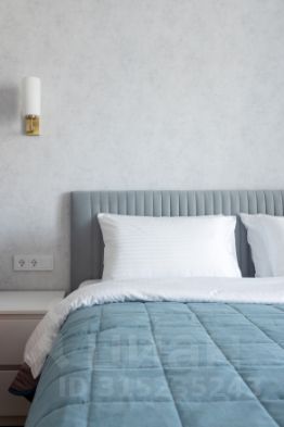 Двуспальная кровать, заправленная белоснежным постельным бельём и два двуспальных дивана