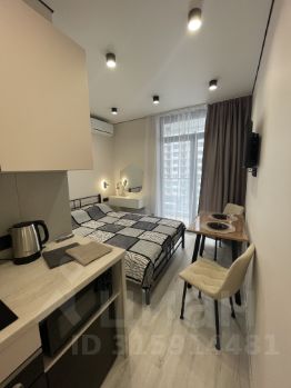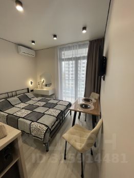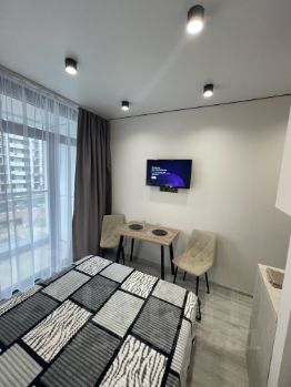 —Просторная светлая студия с уютным балконом, идеальным для утреннего кофе или вечернего отдыха.