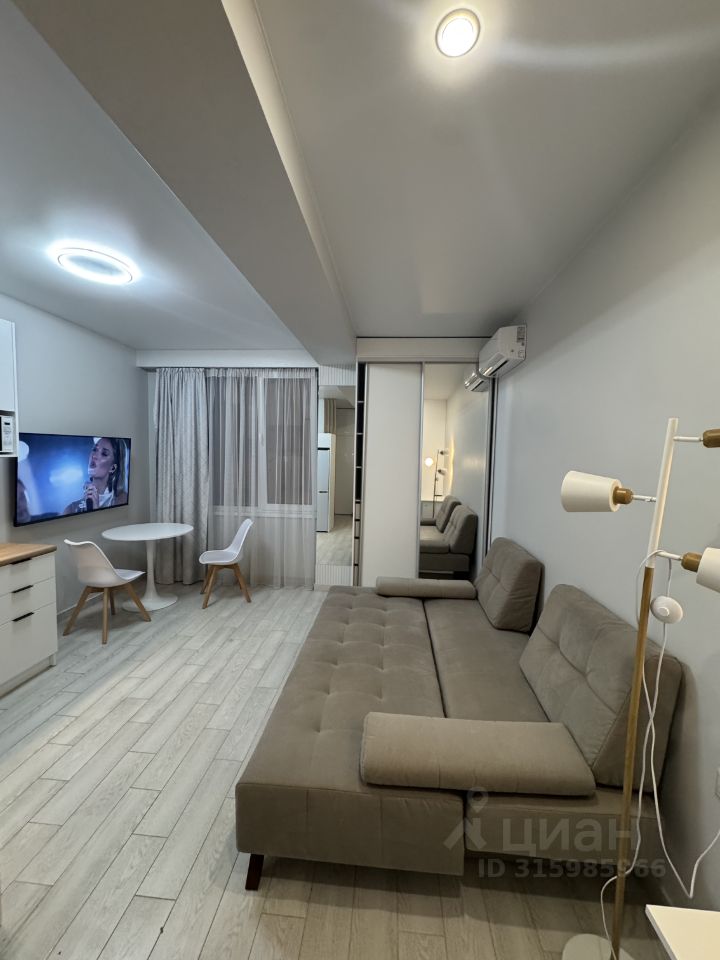 В студии выполнен дизайнерский ремонт, который создаёт атмосферу уюта и элегантности. Совмещённый санузел оборудован душевой кабиной. Кухня и комната обставлены современной мебелью, что делает пространство функциональным и комфортным. В наличии вся необходимая техника: кондиционер, холодильник, телевизор и стиральная машина, чтобы вы могли чувствовать себя как дома., много мест для хранения вещей.