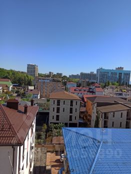 Сдается уютная квартира-студия в отличном микрорайоне Адлера - Курортный городок (остановка транспорта "Фрегат", АЗС). Квартира очень светлая, чистая, уютная, с панорамным видом на город и море. Море в 5 минутах ходьбы. В шаговой доступности магазины, кафе, столовые, океанариум, дельфинарий, остановки общественного транспорта. Квартира оборудована всем необходимым для комфортного проживания: диван (2 мест), мягкая раскладушка, телевизор, стиральная машинка, плита, микроволновая печь, кондиционер, фен, утюг, постельные принадлежности, полотенца. Оборудована кухня. До центра Сочи / Олимпийского парка 20 минут. Сдается от 3 х суток.