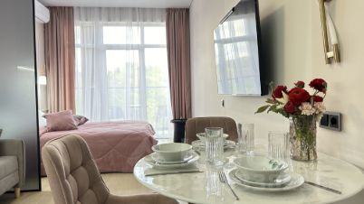 Наши апартаменты-студия находятся в жк Аллея парк. Жк Аллея парк - это новый комплекс бизнес класса, находится в окружении лесопарка на закрытой территории. Достаточное количество паркинга, детские и спортивные площадки, все для комфортного отдыха.
